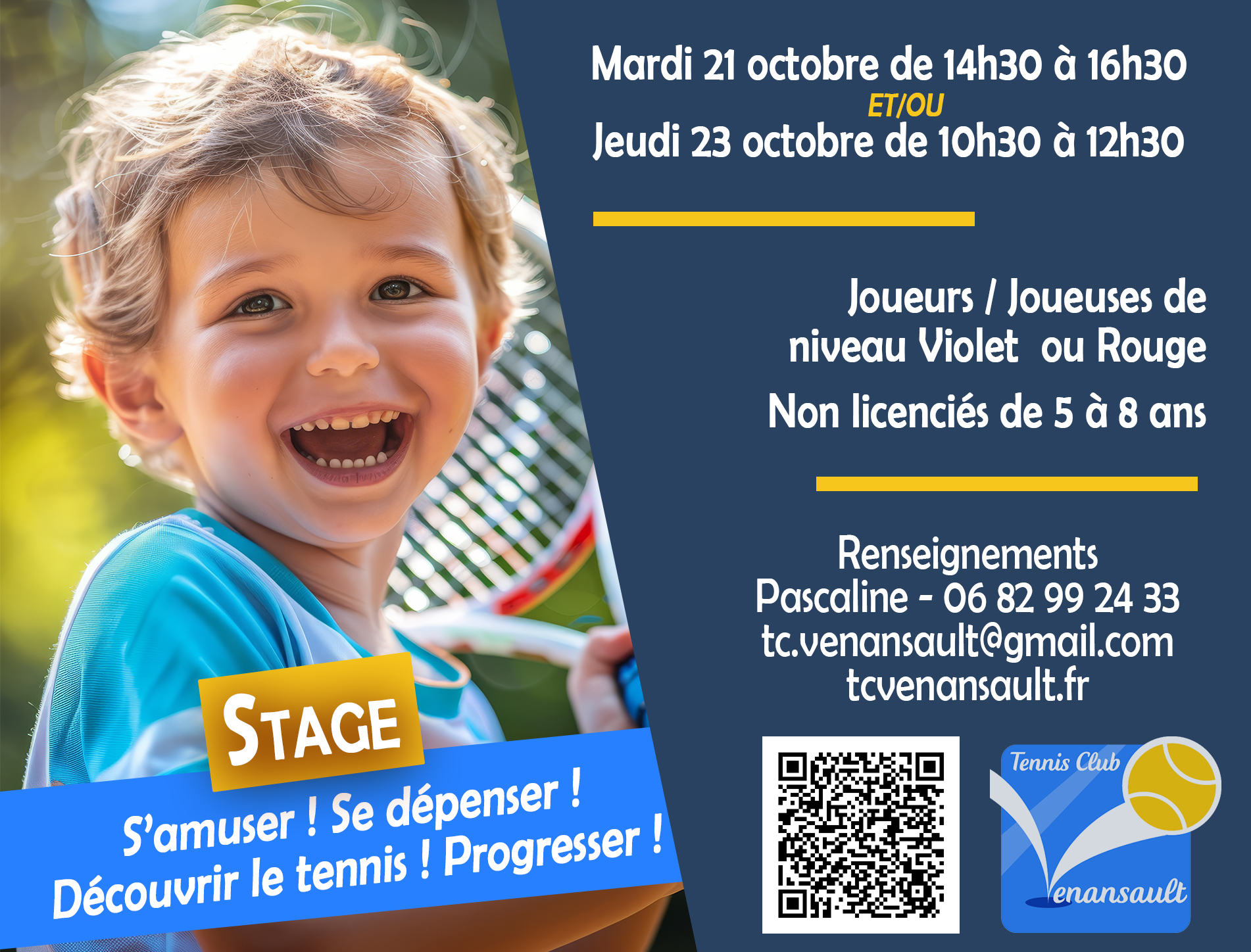 Pascaline vous propose un stage dédié aux jeunes joueurs et joueuses de niveau violet et/ou rouge mais aussi à tous les enfants de 5 à 8 ans qui souhaitent découvrir le tennis et venir s’amuser avec des copains !
